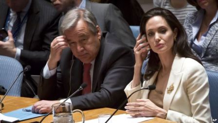 Angelina Jolie pidió a las potencias mundiales ayudar a los millones de refugiados sirios, y criticó al Consejo de Seguridad de la ONU por no hacer nada para superar sus divisiones sobre el conflicto sirio, que ya lleva cuatro años.