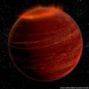 Este dibujo de la auora en la enana marrón, distribuido por el Instituto de Tecnología de California, muestra sus tonos rojizos y su intenso brillo.