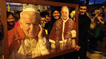En ese momento, Karol Wojtyla y Angelo Roncalli serán, oficialmente, santos de la Iglesia católica. A continuación, Francisco oficiará una misa.