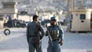 Policías afganos vigilan el sito de un ataque nocturno frente a una base en Kabul, Afganistán, el sábado, 8 de agosto de 2015.