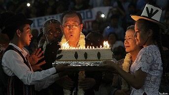 Ban Ki-moon sopló las velas pero abstuvo de probar la torta de coca que le obsequiaron los indígenas.