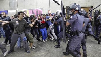 Cuando falta tan poco para que Brasil y Croacia disputen en Sao Paulo el primer partido del campeonato mundial de fútbol 2014, la metrópolis amaneció con varias estaciones de metro bloqueadas por sindicalistas, quienes están en huelga desde hace cinco días con miras a obtener mejoras salariales y se enfrentaron este lunes (9.6.2014) a la tropa de choque de la policía. Los disturbios más serios tuvieron lugar en la estación de metro Ana Rosa, una de las más importantes de la urbe brasileña.