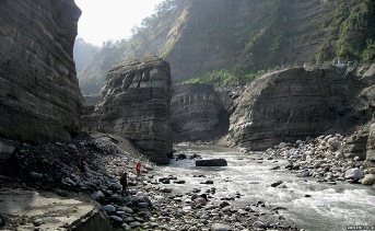 La gran formación rocosa fotografiada en el centro del cañón desapareció en una hora durante una crecida del río en 2012. Un cañón en