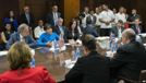 La secretaria de Comercio, Penny Pritzer, centro y de azul, encabeza una delegación que viajó a Cuba para reunirse con autoridades cubanas y analizar mecanismos para facilitar y mejorar las relaciones comerciales en Cuba.