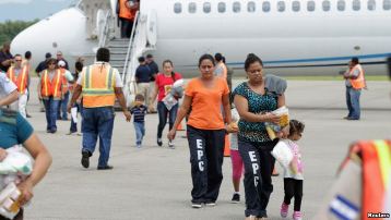 El vuelo chárter arribó en San Pedro Sula, la ciudad con la tasa de homicidios más alta del mundo, trayendo a 17 mujeres hondureñas adultas, 12 niñas y nueve niños, de edades comprendidas entre 18 meses y 15 años, de acuerdo con el Gobierno de Honduras.