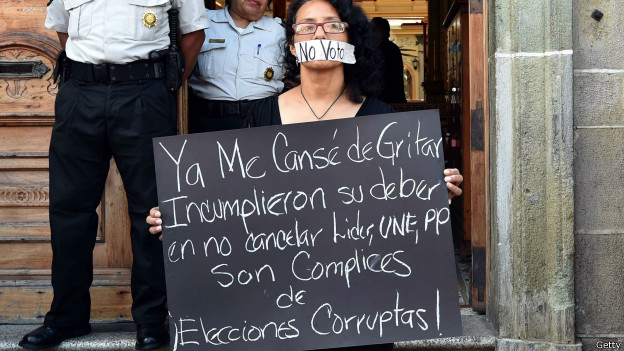 Según el diario Prensa Libre de Guatemala, decenas de personas exigen aplazar la fecha de las elecciones del próximo domingo frente al Tribunal Supremo Electoral, y que los magistrados suspendan a los partidos políticos que han violado la ley.