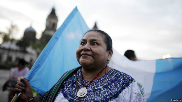 Rigoberta Menchú se unió a las manifestaciones de quienes celebraban la renuncia de Pérez Molina en Ciudad de Guatemala.