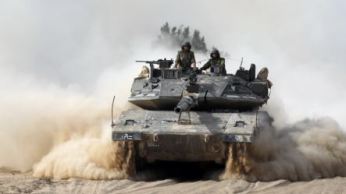 Soldados israelíes a bordo de un tanque en las afueras del sur de Gaza.