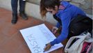 Jóvenes llevaron carteles pidiendo justicia por la muerte de Andrea y por el cese de los feminicidios en Bolivia.