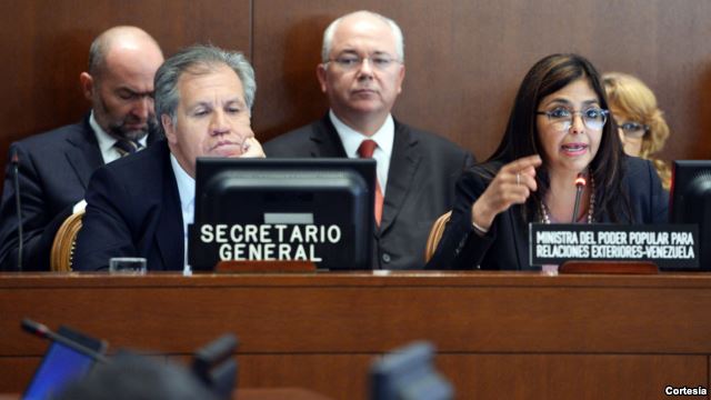 La canciller venezolana, Delcy Rodríguez, acusó al el jueves al uruguayo Luis Almagro de abusar de sus atribuciones como secretario general de la OEA y “respaldar” a la oposición venezolana.