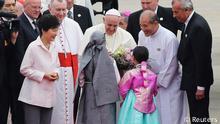 En su primera visita a Asia, el Papa fue recibido en la mañana de hoy en un aeropuerto militar de Seúl por la presidenta Park. La mandataria surcoreana saludó a Francisco expresando la esperanza de que su visita ayude a «inaugurar una era de paz y reconciliación en la península coreana».