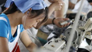 un trabajador chino muestra su producto en una fábricaLas empresas occidentales tratan de acceder al mercado chino para beneficiarse