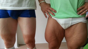 Las piernas de Andre Greipel en comparación con las del ciclista de pista Robert Foerstermann.