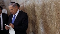 Acompañado por su esposa Sara, el primer ministro israelí, Benjamin Netanyahu, visitó hoy el Muro de los Lamentos para festejar su victoria en las elecciones de Israel que se llevaron a cabo ayer.
