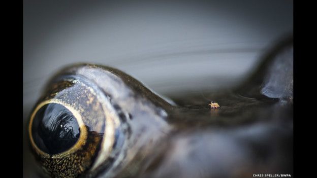 En el espacio entre los ojos de esta rana, una pulga camina tranquilamente. Esta foto le valió a Chris Speller el premio en el rubro cerca de la naturaleza.