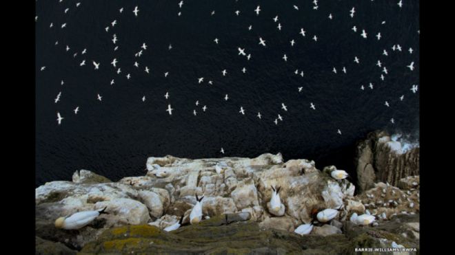 Esta imagen de alcatraces sobre la cima de un acantilado en una de las Islas Shetland, en el Atlántico Norte, fue la ganadora del concurso British Wildlife Photography Awards 2015. Su autor es Barrie Williams.