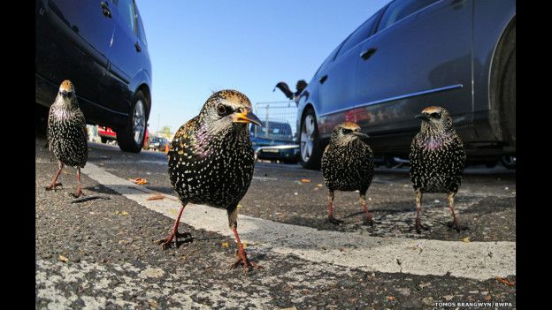Tomos Brangwyn fue el ganador en el rubro vida silvestre urbana, con su foto de un grupo de estorninos que se plantaron ante la lente de su cámara con mirada amenazante.