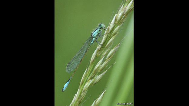 Max Eve, de diez años de edad, obtuvo el primer premio en la categoría de menores de 12 años con su foto de un zigóptero –más conocido como caballito del diablo o libélula- de cola azul, tomada en Escocia.
