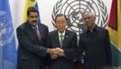 Durante la asamblea general de la ONU el presidente de Venezuela, izq., y el de Guyana, David Granger, der., acordaron tratar de solucionar sus diferencias en un marco de paz.