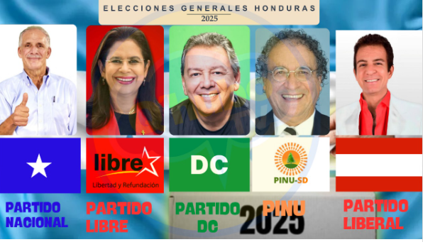 Son cinco los candidatos presidenciales, aunque estas elecciones se perciben esencialmente como una contienda a tres bandas entre la exministra de Defensa Rixi Moncada, del partido izquierdista Libre; el presentador de televisión Salvador Nasralla, del centrista Partido Liberal; y el empresario Nasry «Tito» Asfura, del derechista Partido Nacional.