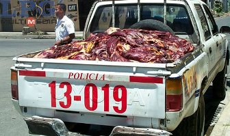 La Policía Nacional Civil (PNC) informó que incautó un total de 2,000 libras de carne de caballo, hoy a las 4:00 de la mañana, en el kilómetro 42 de la carretera al Litoral, jurisdicción de Santiago Nonualco, en La Paz.