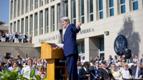 El “futuro de Cuba debe ser forjado por los cubanos”, dijo John Kerry antes del simbólico izaje. Eso sí, insistió el primer Secretario de Estado estadounidense que visita Cuba desde 1945, “seguimos convencidos que la gente de Cuba estaría mejor servida por una verdadera democracia”. Las grandes cadenas internacionales de televisión siguieron el discurso en vivo. Con el usuario @USEmbCubay el hashtag #KerryenCuba, la nueva embajada tuiteó las fotos y frases claves de la ceremonia