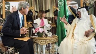 La visita del jefe de la diplomacia estadounidense a Arabia Saudita ocurre un día después de que el presidente Barack Obama pidió al Congreso en Washington la aprobación de $500 millones de dólares para entrenar a rebeldes sirios moderados.