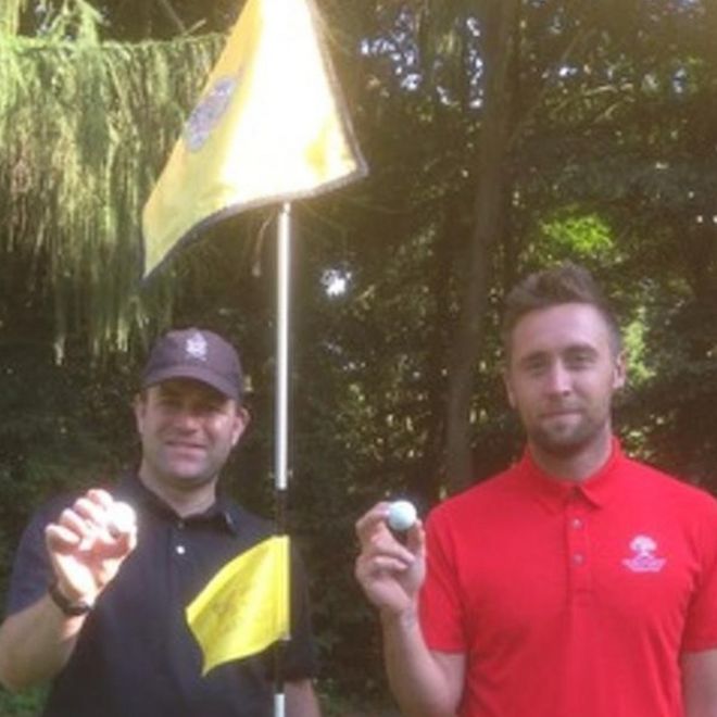 Los afortunados jugadores fueron Mark Avis y Aaron Saddleton, quiene participaban en un torneo aficionado por parejas en el campo del Royal Norwich Golf Club, en el este de Inglaterra.