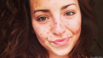 Samantha siente que debe ponerse maquillaje todo el tiempo para disimular las cicatrices de la cara.