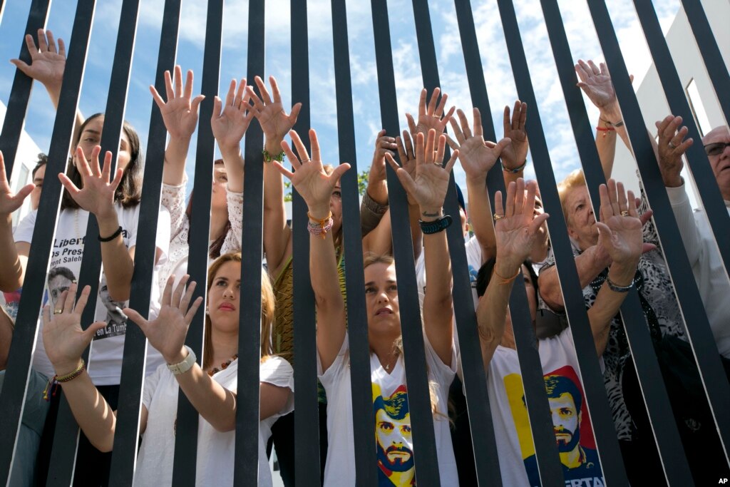 Manifestantes encabezados por Lilian Tintori demandando la libertad de los presos políticos en Venezuela.
