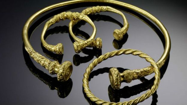 Un ejemplo es este reciente hallazgo, en 2014, de este torque de bronce y un broche romano-británico, encontrados cerca de Auldearn, Escocia.
