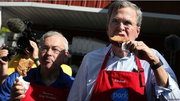 Varios políticos estadounidenses han sido fotografiados comiendo chuletas de cerdo pinchadas en un palillo durante un evento en Iowa, un estado clave para los aspirantes a la presidencia de Estados Unidos.
