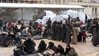 Familias sirias desplazadas por la guerra se refugian en una escuela en las afueras de Damasco.