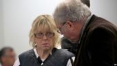 Joyce Mitchell consulta con su abogado Steven Johnston al presentarse a una corte del estado de Nueva York.