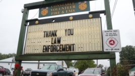 Un letrero de los bomberos en Constable, Nueva York, agradeciendo la captura del prófugo David Sweat.