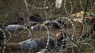 Refugiados afganos duermen al lado de un cerco de alambre de púa en el lado serbio de la frontera con Hungría, el jueves, 17 de septiembre de 2015.