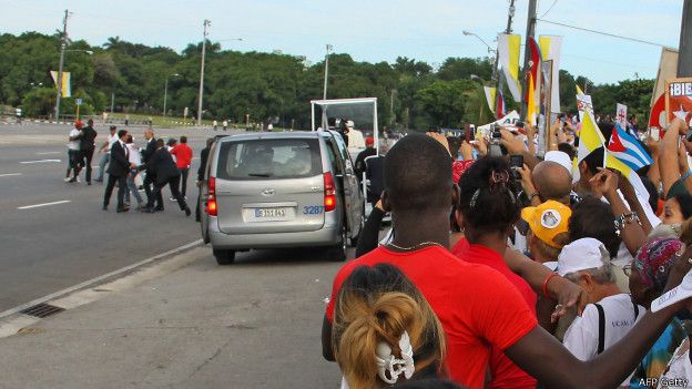 Image captionLa visita del Papa a Cuba a creado revuelo entre creyentes y no creyentes.