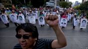 Familiares de los 43 normalistas desaparecidos protestan en Ciudad de México, al cumplirse 10 meses de la masacre.