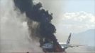 Image copyrightReutersImage captionLos bomberos lograron sofocar las llamas después de que fue evacuado el avión.