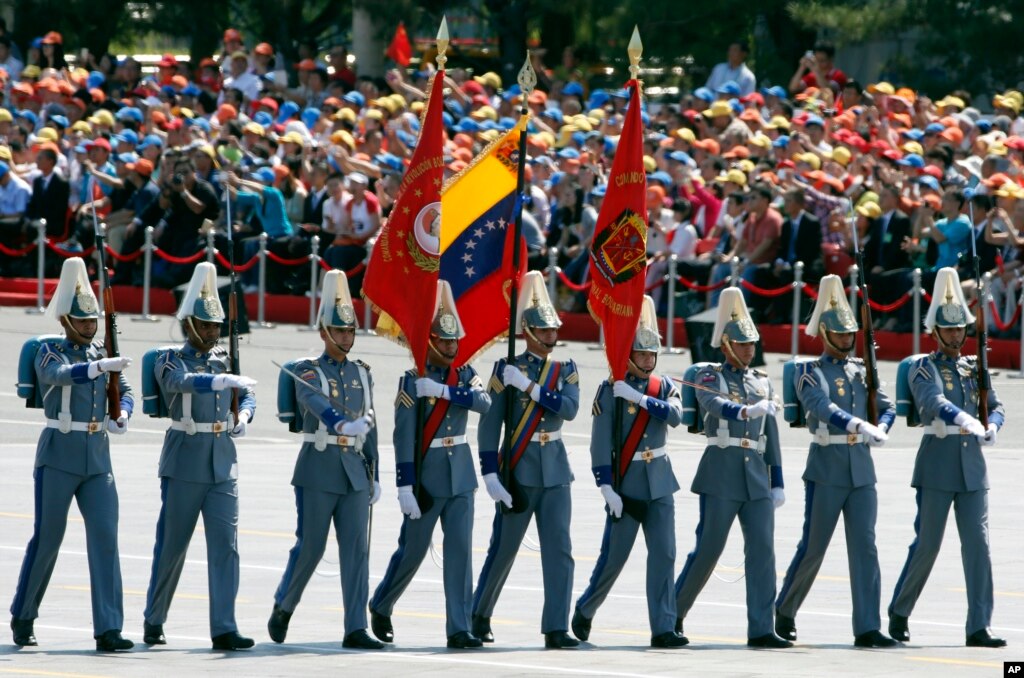 El contingente venezolano participa en el desfile conmemorativo de la rendición de Japón en la II Guerra Mundial, en la plaza Tiananmen de Beijing.
