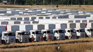 Los camiones, de color blanco, partieron el 12 de agosto de Moscú y siguen hoy a unos 30 kilómetros de la frontera, cerca de Kamensk-Shajtinski. Algunos de ellos ya se desplazaron al paso de Donetsk/Isvarino.