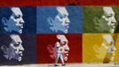 Una persona pasa frente a un mural con rostros de ChávezImage copyrightGetty